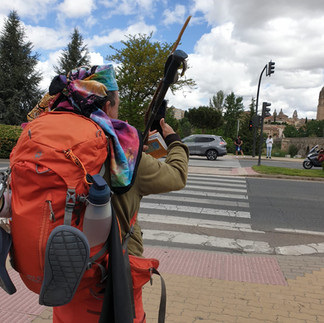 Nach einer sehr ruhigen Nacht und einem Mini Frühstück ging es dann 20 km nach Salamanca. Der Weg ging über Schotterpisten an großen Weideflächen mit Kühen vorbei. Die Natur war sehr eintönig.