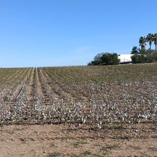 Heute bin ich zeitig los. Vor mir liegen 30 km ohne wirkliche Alternative. Im Moment wird es erst gegen acht Uhr hell und ich laufe gegen 7.30 Uhr los. Dafür erblicke ich zwar keinen Sonnenaufgang ( weil die Sonne geht hinter mir auf) jedoch auch keine Autobahn oder Bahntrasse. Hin und wieder werde ich von landwirtschaftlichen Traktoren tangiert, dies ist jedoch immer partiell. Also heute nur am Anfang etwas Straße und dann tauche ich ein in das "normale" Spanien. Kleine Fincas mit Hund. Mal sehr ordentlich und Mal total chaotisch. Ich genieße das Laufen. Nach ein paar Stunden erreiche ich das erste Baumwolle Feld welches ich in meinem Leben sehe. Bin doch sehr verwundert, weiss ich doch das Baumwolle relativ viel Wasser benötigt zum wachsen. Google sagt mir dann auch was von 11.000 l pro kg Baumwolle. OKAY?